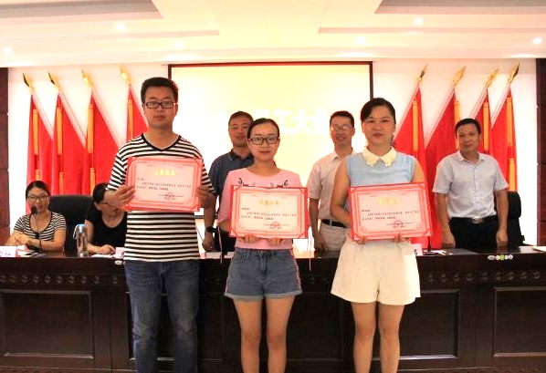 會議由公司副總經理汪銘主持,根據會議安排,首先對2017年第二季度服務明星進行隆重表彰獎勵,柯淼、張艷君、胡美娟等三位員工獲得殊榮。
