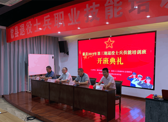 9月9日,歙縣2019年度第三期退役士兵職業技能培訓期在我青創職業培訓學校隆重開班。縣退役軍人事務局局長金自立、副局長潘煉等領導,青創職業培訓學校、康順駕校負責人出席開班儀式并發表講話。