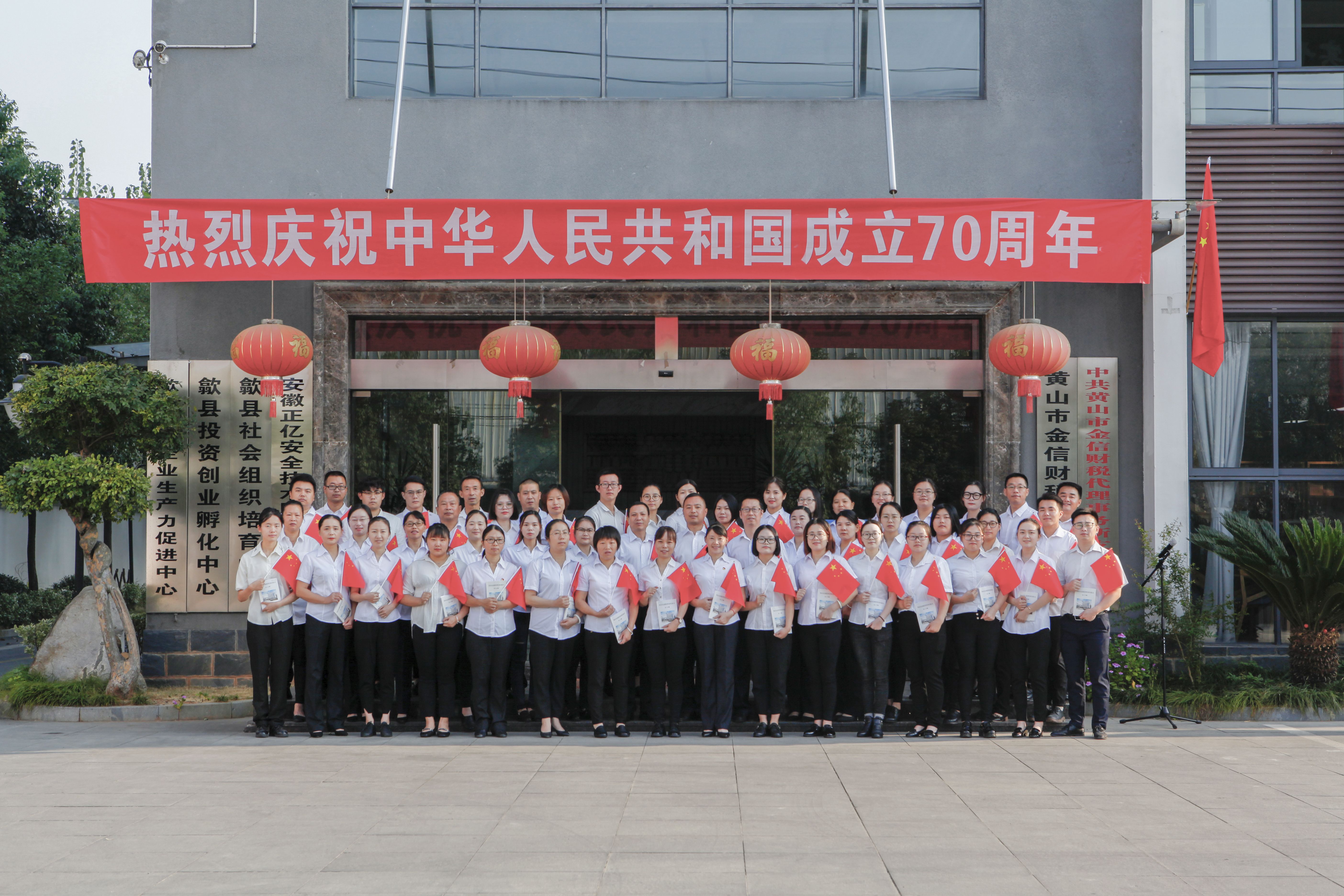 9月30日,我公司在辦公大樓前隆重舉行慶祝中華人民共和國成立70周年升國旗儀式。公司總經(jīng)理胡海鋒、副總經(jīng)理汪銘及全體員工54人參加升旗儀式。公司項目發(fā)展部經(jīng)理方志義主持升國旗儀式。