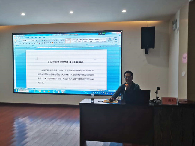 主講汪銘是中心副主任,集注冊會計師、注冊稅務師、管理會計師與一身,具有豐富的財稅工作實踐經驗。他時刻關注政府部門新近頒布的政策法規,并認真學習和鉆研。當日,汪銘副主任從個人所得稅征稅對象、稅率、優惠政策、應納稅所得額、匯算清繳、法律責任等六個方面進行深入闡述,并結合國家稅務總局《關于辦理2019年度個人所得稅綜合所得匯算清繳事項的公告》(國家稅務總局公告2019年第44號)、財政部 稅務總局《關于個人所得稅綜合所得匯算清繳涉及有關政策問題的公告》(財政部 稅務總局公告2019年第94號)進行解釋和說明,使全體參訓人員對2019年度個人所得稅匯算有了更全面的認識,有助于更好地為中小企業和納稅人做好相關服務。