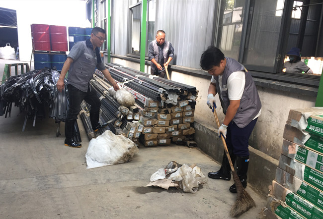 (圖為招商中心、金信財稅員工參加開發區金翠谷公司車間打掃。)