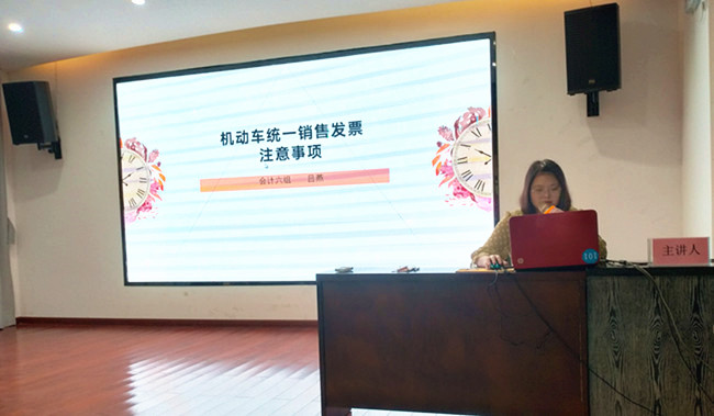 呂燕是一名初級會計師,她平時工作努力、勤奮好學、積極向上,已經成為公司的骨干力量。此次分享她結合機動車銷售統一發票的種類、開具的注意事項以及特殊規定等幾個方面進行詳細介紹,經過呂燕的講解,使參與分享人員對機動車銷售發票開具、使用和抵扣有了更全面的了解和認知,有助于更好的為企業做好服務。