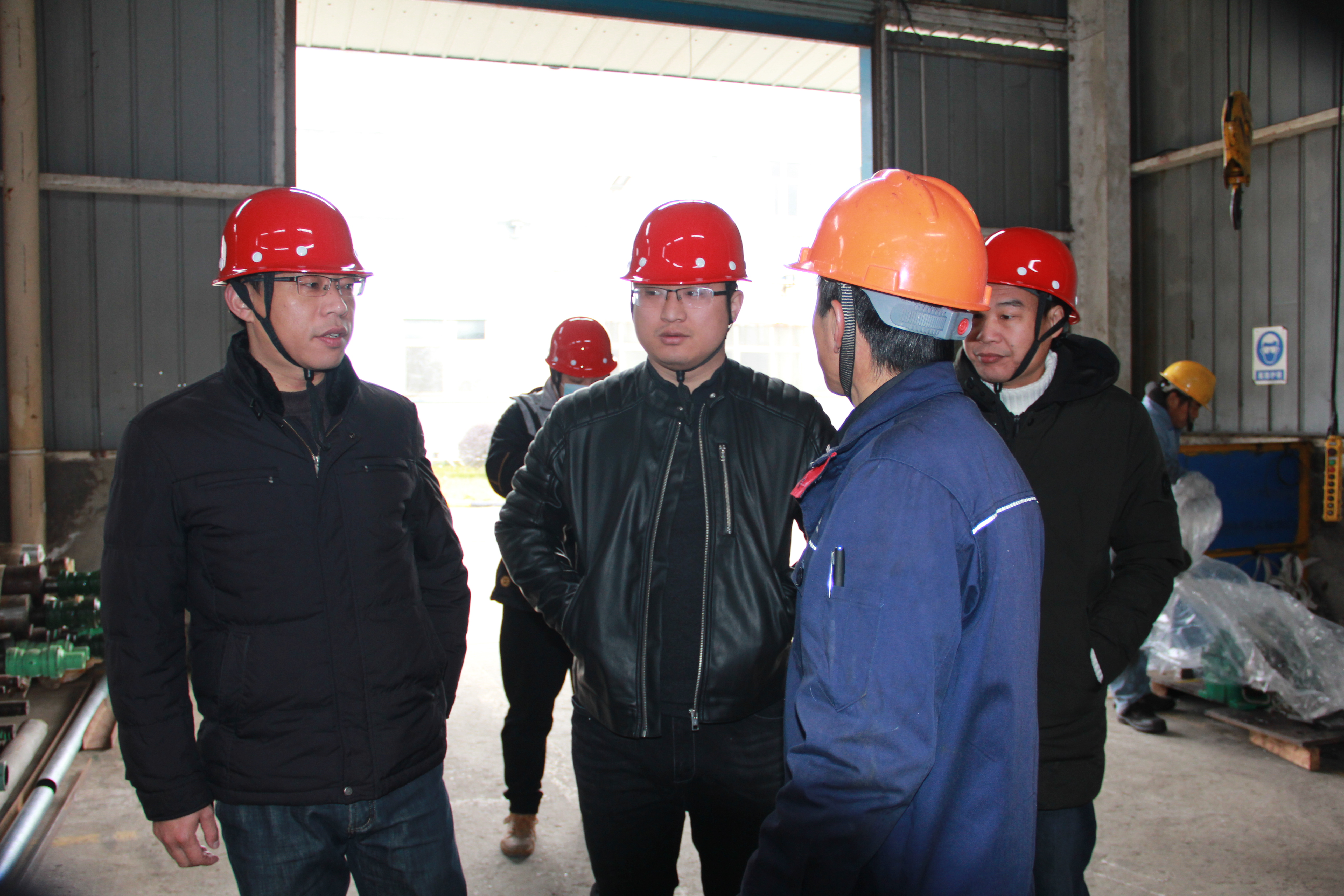 (上圖為富堨鎮政府副鎮長朱超(中)帶隊在華邦公司車間檢查。)