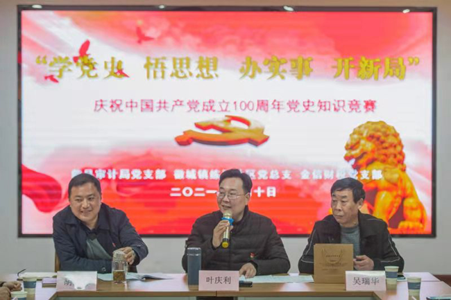 2021年3月10日,徽城鎮金信財稅1+X黨建共建圈為紀念中國共產黨成立100周年,與歙縣審計局黨支部、練江社區黨總支、玲玲物業黨支部、樂億教育黨支部、昌仁醫院黨支部、天正達財稅黨支部、振超彩印黨支部聯合開展“學黨史 悟思想 辦實事 開新局 ”黨史知識競賽活動。各支部40余名黨員和發展對象、積極分子參與本次活動。活動由歙縣審計局黨支部葉慶利同志主持。