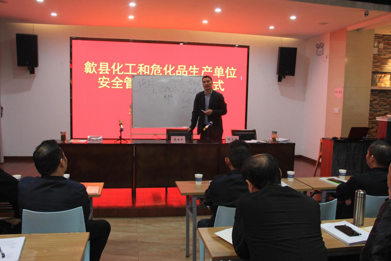 2021年4月19日,歙縣2021年度化工和危化品生產單位安全生產管理人員培訓班在正億特安培訓中心隆重開班。黃山市應急局吳永杰副局長到會作開班動員,歙縣應急局局長張衛(wèi)國到會并做法律輔導。培訓承辦單位——黃山市正億特安安全培訓中心負責人胡海鋒主持培訓。培訓專門邀請安徽省第一屆應急管理專家組化工及危化品專業(yè)組專家喬保國及市、縣應急局相關科室進行專題授課。歙縣化工和危化品生產單位22家安全生產管理人員60人參加培訓。
