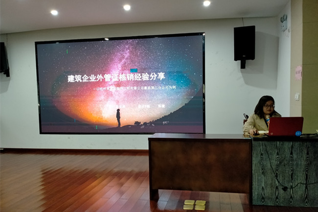 2021年5月22日,由審計鑒證部會計張捷主講的“建筑業外管證核銷”專題PPT分享在一樓眾創空間舉行,中心財稅服務人員50余人參與此次分享。