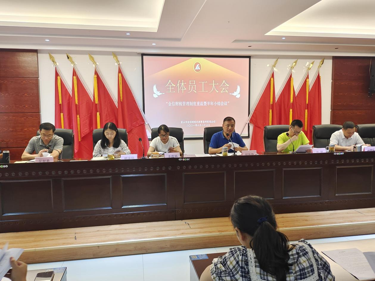 2021年6月26日,歙縣招商投資服務(wù)中心、黃山市金信財稅代理事務(wù)所有限公司“管理制度重溫暨半年小結(jié)會議”在五樓報告廳隆重舉行,中心全體員工60余人參加會議,中心主任胡海鋒主持會議并做重要講話。