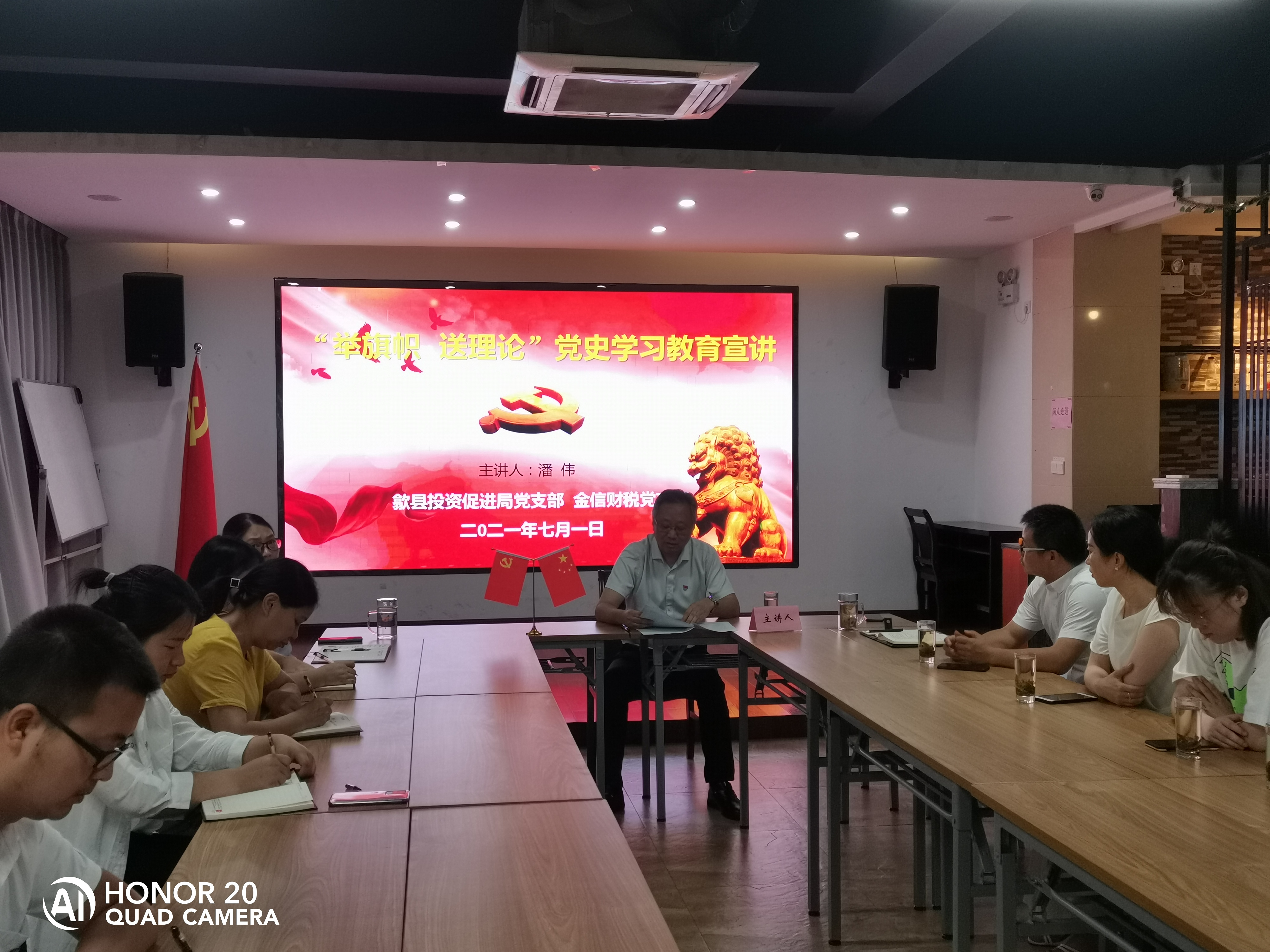 2021年7月1日,歙縣投資促進局黨支部書記、局長潘偉一行來到歙縣招商投資服務中心,與結對的金信財稅黨支部開展慶祝建黨100周年共建活動。