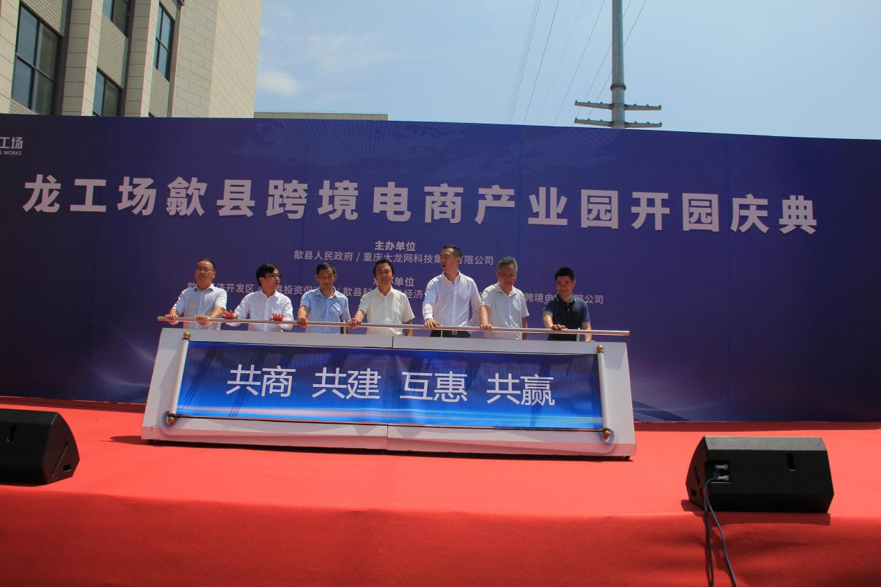 2021年7月6日,位于歙縣經(jīng)濟(jì)開(kāi)發(fā)區(qū)二期香寧科創(chuàng)園內(nèi)的——龍工場(chǎng)歙縣跨境電商產(chǎn)業(yè)園盛大開(kāi)園。歙縣人民政府副縣長(zhǎng)鄭小毅,縣經(jīng)濟(jì)開(kāi)發(fā)區(qū)管委會(huì)副主任汪璟峰,縣投資促進(jìn)局局長(zhǎng)潘偉,縣科技商務(wù)經(jīng)信局黨組書記葉志宏、副局長(zhǎng)胡志堅(jiān),縣開(kāi)發(fā)區(qū)投資開(kāi)發(fā)有限公司董事長(zhǎng)吳光玉等領(lǐng)導(dǎo)出席開(kāi)園慶典,運(yùn)營(yíng)方大龍網(wǎng)集團(tuán)副總裁夏彬、大龍網(wǎng)集團(tuán)黨支部書記、運(yùn)營(yíng)中心總經(jīng)理謝秋,歙縣龍工場(chǎng)跨境電商服務(wù)有限公司總經(jīng)理劉濤,安徽香寧眾創(chuàng)科技服務(wù)有限公司總經(jīng)理胡海鋒等參加儀式。