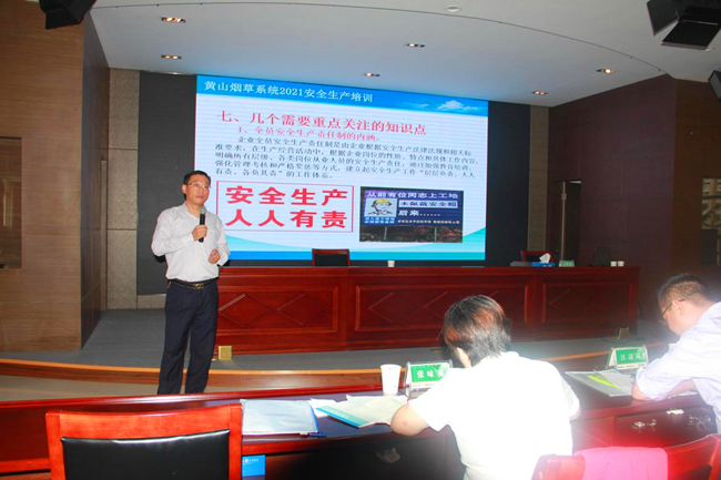 2021年10月15日,黃山市煙草專賣局(公司)企業安全生產培訓班在市公司駐地順利舉辦。黃山市應急管理局副局長吳永杰作開班動員講話,并就近期全國安全生產形勢進行通報,對行業相關工作作出部署和要求。市局領導班子、局機關各職能部門及徽州皖韻酒店,各區縣局(營銷部)負責人、安全生產管理人員近70余人參加培訓。我安徽正億安全技術服務有限公司承擔培訓內容準備和課程安排等工作。