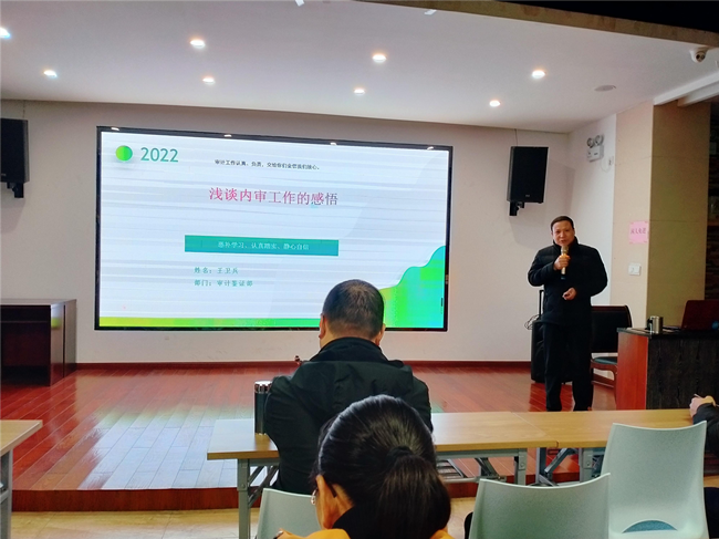 王衛兵經理從事財稅審計工作已有30余年,有著豐富的工作經驗和操作能力,是審計業務部門的領頭羊,也是我地資深中級會計師。他以專業的財稅審計專業知識基礎、勤勉敬業的工作態度和精神得到客戶的高度認可和政府相關部門的贊揚和肯定。此次培訓會上,王衛兵經理結合多年來參與財稅審計工作的經歷,從內審業務簡介、發展歷程、經驗分享、工作收獲四個方面,詳細介紹了內審工作對企業的幫助,相關數據之間的邏輯聯系,以及對個人、團隊業務專業能力促進的重要作用,他的惡補學習、認真踏實、靜心自信的工作感悟引起參訓人員的共鳴。通過培訓,不僅提升了參訓人員的專業服務能力,更使大家鼓足干勁,勇于面對挑戰,以永不言敗的激情投入到企業服務中去。