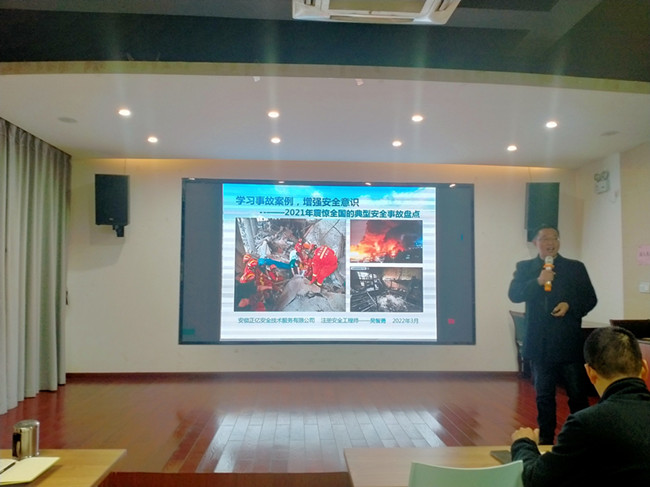 吳智勇注安師在安全生產(chǎn)培訓(xùn)及企業(yè)安全生產(chǎn)隱患排查、檔案建立等方面有著豐富的工作經(jīng)驗。當日,他主要圍繞2021年全國典型事故案例,重點講解燃氣爆炸、火災(zāi)、交通事故、坍塌等類別生產(chǎn)安全事故,并結(jié)合日常生產(chǎn)生活,提出關(guān)注的重點和預(yù)防措施。經(jīng)過吳智勇注安師的講解,參訓(xùn)人員安全生產(chǎn)意識進一步提升,增強了應(yīng)急處置和事故防范的能力,對于日常生活和生產(chǎn)管理都有重大意義。