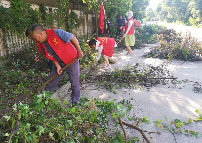 夏日炎炎,地面溫度接近40℃,但全體黨員熱情高漲,支部書記胡海鋒一馬當(dāng)先、率先垂范,對兩側(cè)的雜亂植物進(jìn)行清理;其他黨員也毫不示弱,利用各種工具參與其中,汗如雨下,順著臉頰酣暢流淌,浸濕前胸后背,但大家都毫不在意。經(jīng)過2個(gè)小時(shí)的緊張奮戰(zhàn),使園區(qū)這一路段由“雜草叢生”變成“眼前一亮”,大道更加寬敞、整潔。