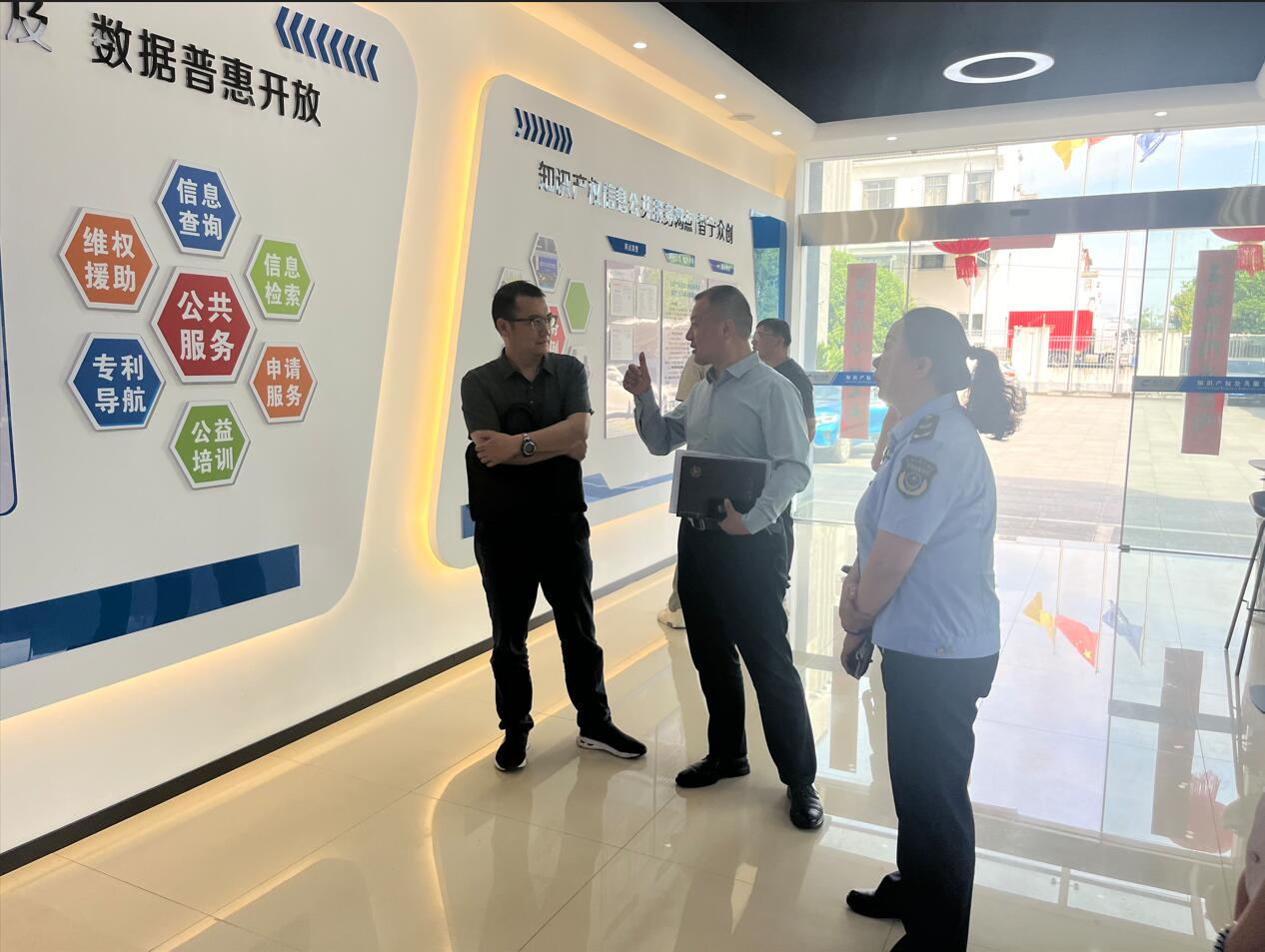 調研組一行首先參觀了我公司建設的黃山市知識產權“一站式”服務工作站,詳細了解了工作站的建設情況。