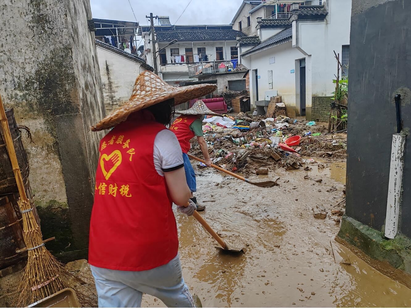 金信財稅黨支部也積極響應,于6月30日深入災情嚴重的森村鄉。黨員們攜帶鐵鍬、掃把等工具,深入一線,開展居民房屋清淤工作。在細雨淅瀝中,金信黨支部展現了其有溫度、有情誼的抗洪救災行動,這份答卷正在提交中,體現了黨組織在危難時刻的責任與擔當。