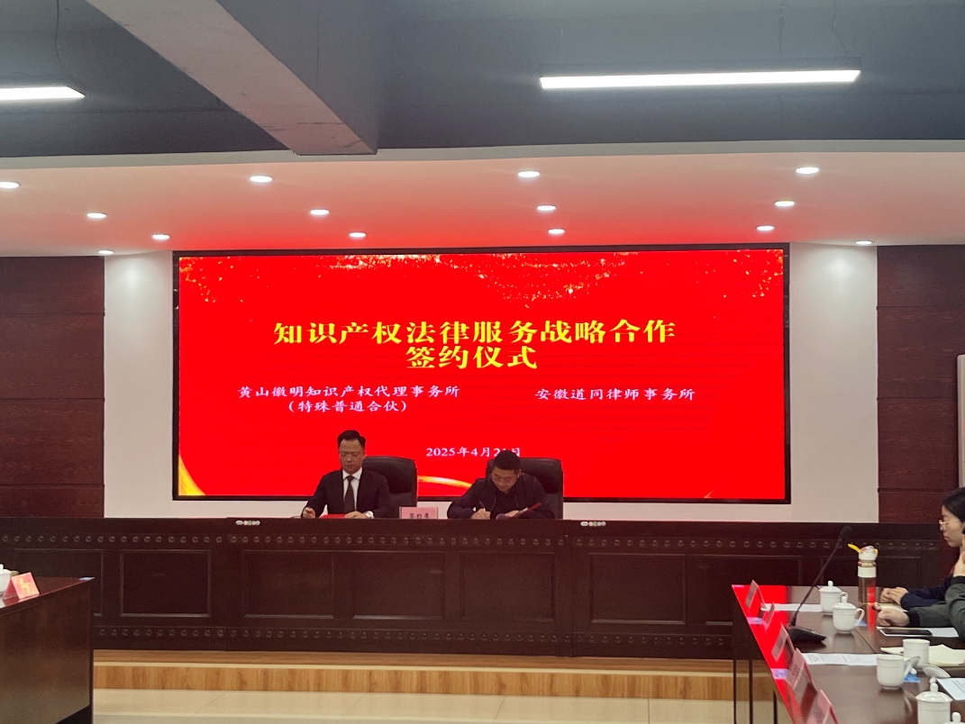 當(dāng)日,黃山本土專利代理機(jī)構(gòu)組織召開“共話未來(lái)趨勢(shì) 共謀發(fā)展機(jī)遇”交流座談會(huì),金信集團(tuán)所屬的專利代理機(jī)構(gòu)徽明事務(wù)所所長(zhǎng)胡海鋒與道同律師事務(wù)所管委會(huì)主任洪徽各自介紹本土知識(shí)產(chǎn)權(quán)業(yè)務(wù)情況和未來(lái)發(fā)展規(guī)劃,并現(xiàn)場(chǎng)簽訂戰(zhàn)略合作協(xié)議。