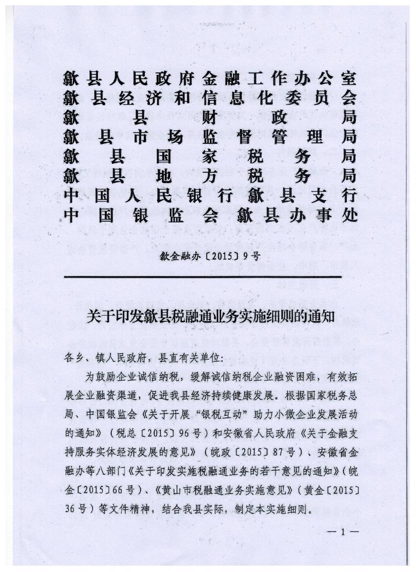 關(guān)于印發(fā)歙縣稅融通業(yè)務(wù)實(shí)施細(xì)則的通知